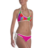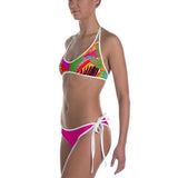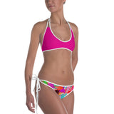 Pretty in Palm on outside, Pretty in Pink on inside. Wear your bikini both ways on a beautiful day to the beach.